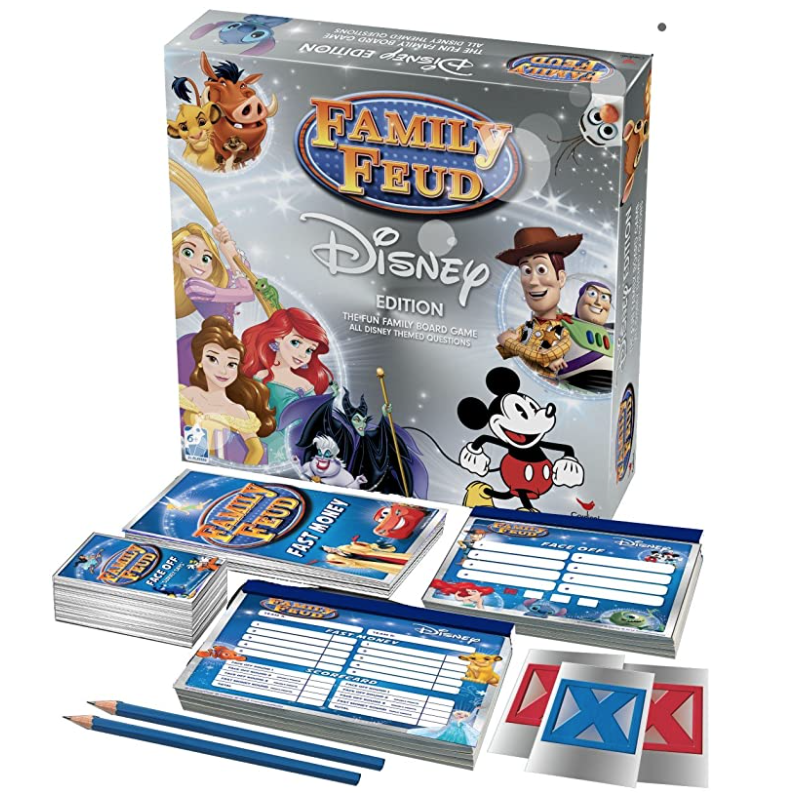 You don’t have to go on the game show to play Family Feud! Now, you can play Disney Family Feud at home with your kids, parents, and siblings.