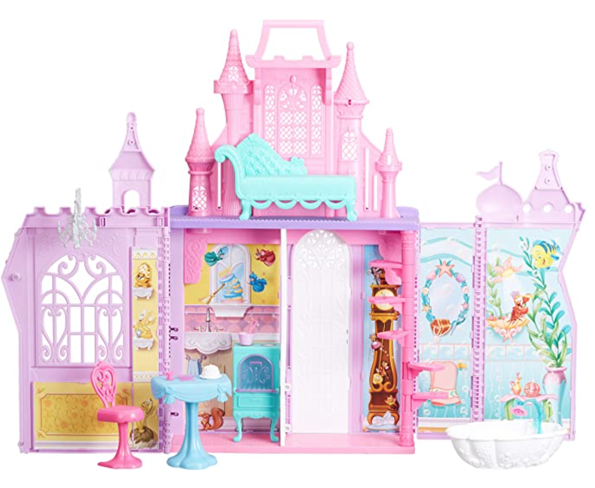 Not only does it have a gorgeous backdrop, but the skirt actually lights up and gives the appearance that the castle is shooting off fireworks into the night sky for $98! UM, AMAZING.