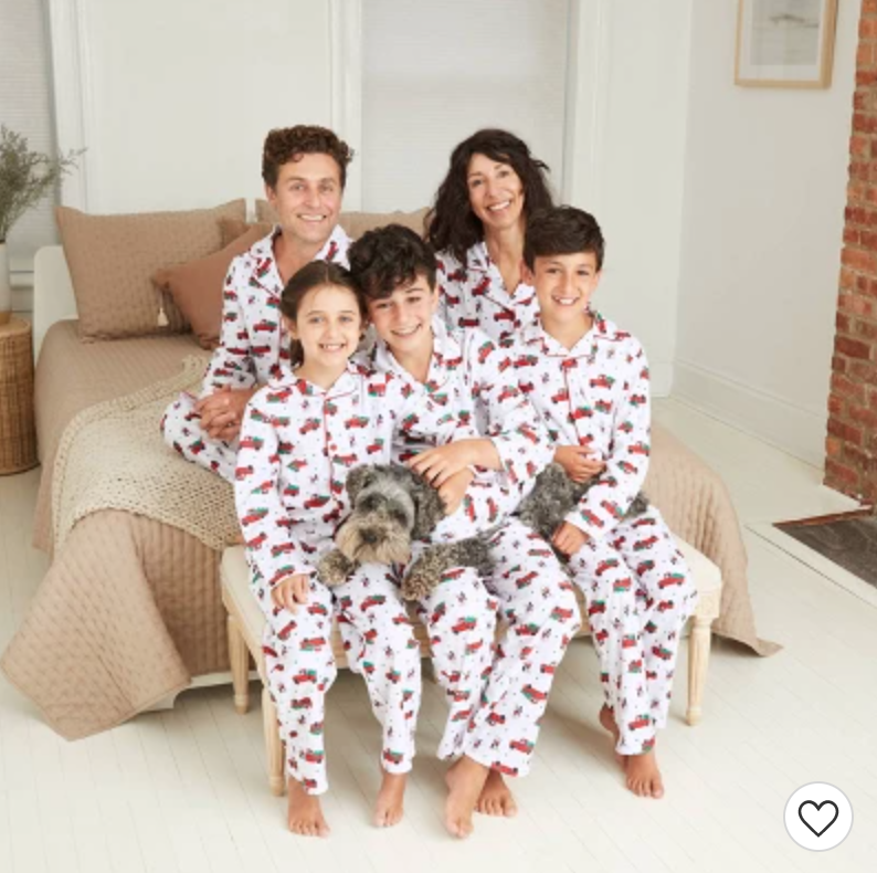 When you wake up on Christmas Day, your whole family (yes, even your dog!) can match in the cutest pajamas, featuring Mickey Mouse hauling Christmas trees.
