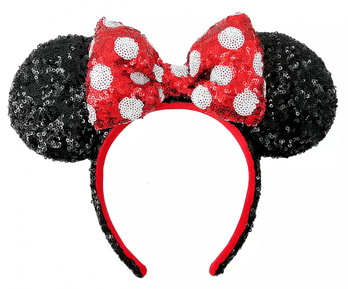 Plus, you can pair it with the adorable redesigned Minnie Ears with a giant red and white polka dot bow, red headband lining, and LOTS of sequins.