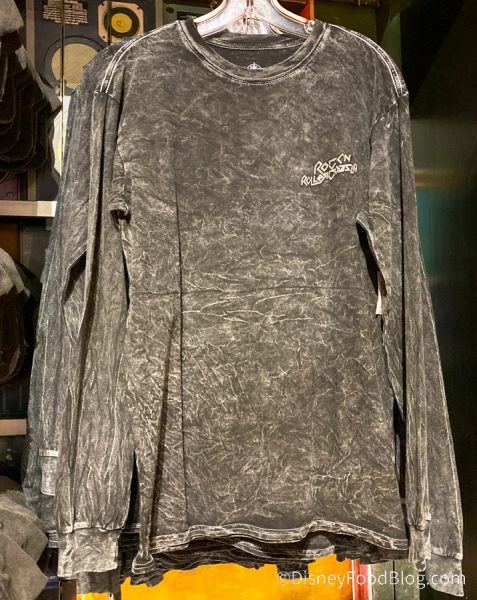 We saw a new-tu-us Rock ‘n’ Roller Coaster Shirt! The shirt has long sleeves with the Rock ‘n’ Roller Coaster logo on it.