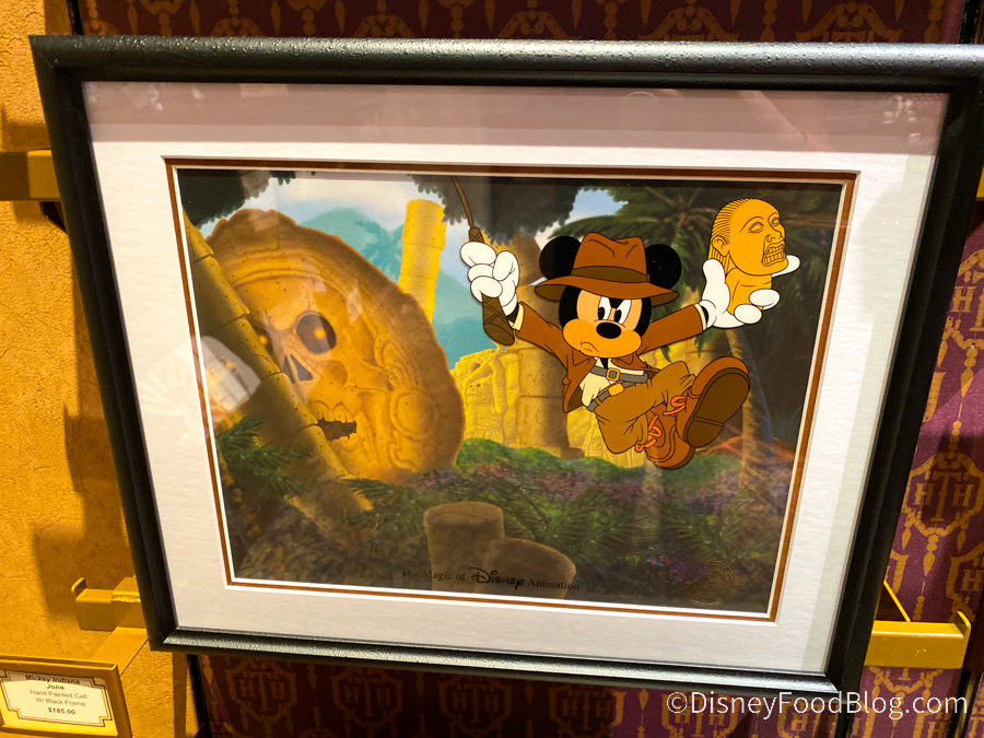 We spotted some new art at the Tower of Terror Shop. These hand-painted cells are super cool! Check out Mickey as Indiana Jones!