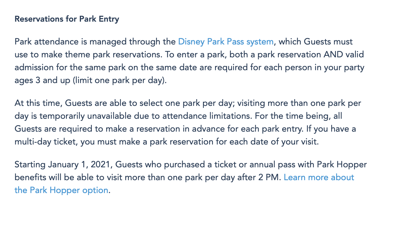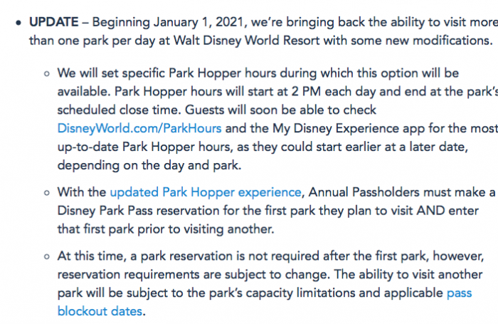Disney has also updated their Annual Pass website to note that, in the case of Annual Passholders, the ability to visit another park will be subject to applicable pass blockout dates, so that’s an important thing to keep in mind.