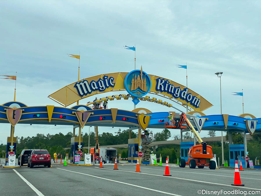 But this park icon isn’t the only thing looking all fresh and new in preparation for the 50th. The entrance sign to the Magic Kingdom is also getting a paint job! The new color scheme is darker blue and iridescent rose gold — VERY trendy for 2021!
