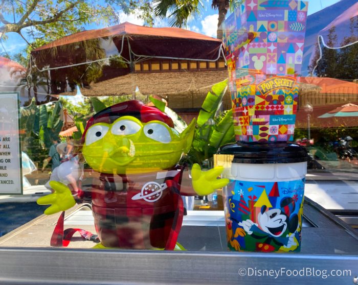 One of our favorite seasonal popcorn buckets, though, made a return this year: the Buffalo Plaid Alien Popcorn Bucket! And although we’ve seen him at Disney’s Hollywood Studios (his usual hangout), we hadn’t seen him at Magic Kingdom — until today!