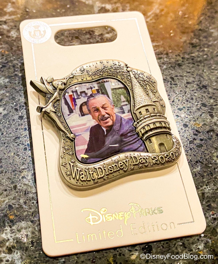 To celebrate the holiday, The Darkroom is stocked with Walt Disney Day 2020 pins, which feature a photo of a smiling Walt surrounded by a castle and Tinker Bell showering him with pixie dust!