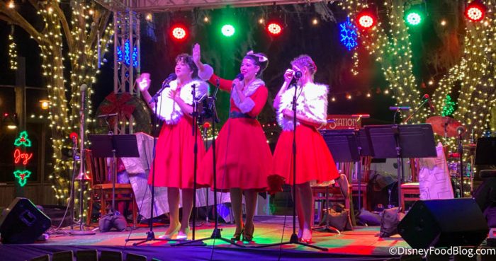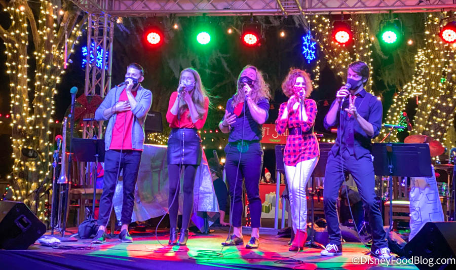 The festival also offers a few different kinds of entertainment. Its live performers include the Jolly Creek Society Orchestra (formerly the beloved Grand Floridian Society Orchestra), the Mistle-tones acapella group, and the Vocalitas!