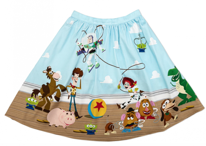 You can also fashion the Pixar Toy Story Friends “Sandy” Skirt that has the whole original gang together (yes, even The Claw) for $80! The skirt is also made of stretch sateen and has ANOTHER pair of pockets (wow, Loungefly just gets us)!
