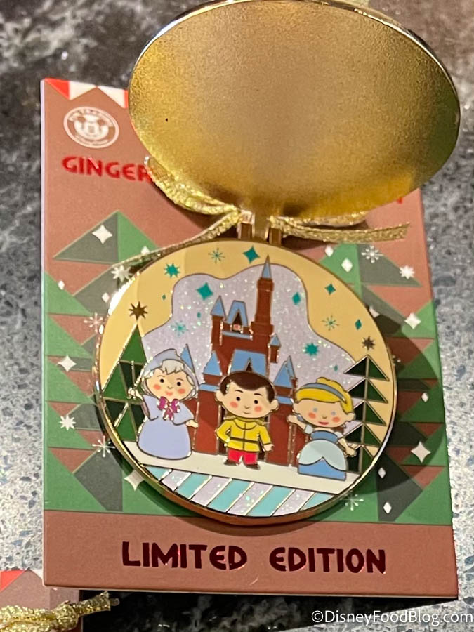 The pin opens up to a scene with some characters from Cinderella with the Contemporary’s iconic gingerbread castle in the background! While the castle may not be out this year, we can reminisce with this pin.