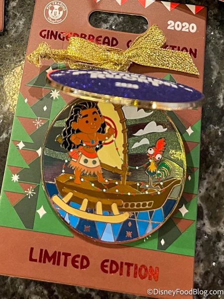 This ornament-themed pin opens up to show Moana and Hei-Hei!