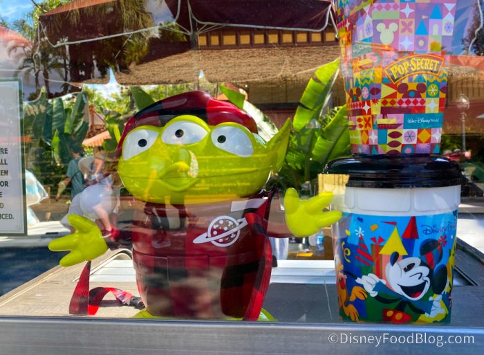 Although we’ve seen the Buffalo Plaid Alien Popcorn Bucket at Hollywood Studios, we finally spotted it at Magic Kingdom!