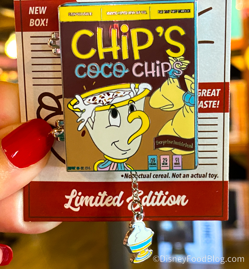 The latest pin in the Cereal Box collection is here, too — this one is Chip’s Coco Chips Cereal Box Pin! It’s got a cute charm on it, too!