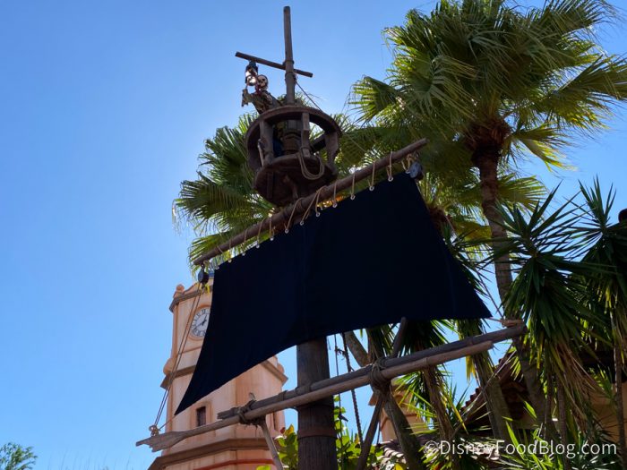 A Cast Member informed us that this was temporary and this flag is just a placeholder, so it looks like Pirates is getting a new sign! We can’t wait to see it!