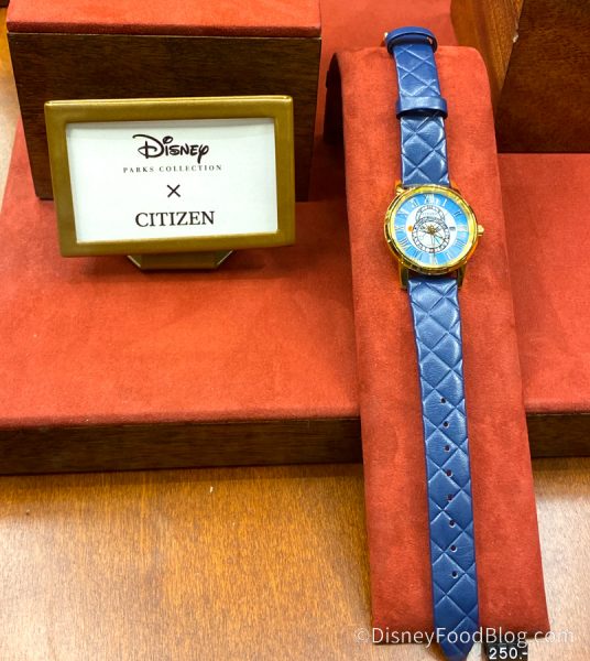 We are in love with the gorgeous Citizen Cinderella Watch we previously found at Animal Kingdom. It’s now in Magic Kingdom, which totally makes sense because that’s where her castle is! This gorgeous watch has a beautiful blue strap and a face with gold details.