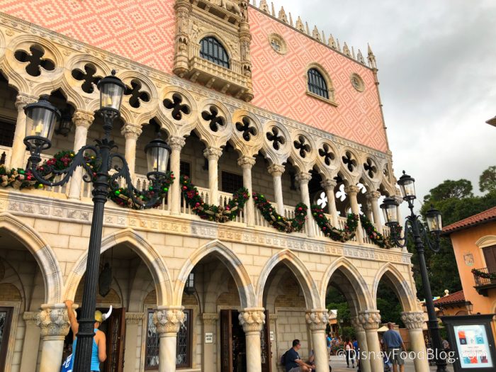 We’re happy to see that EPCOT has FINALLY put up its holiday decorations. Italy is looking especially merry and bright!