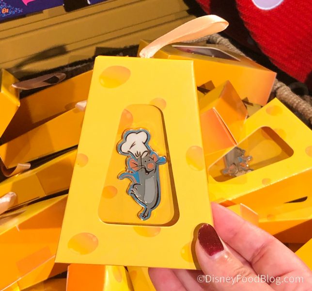 The new Remy Christmas Ornament Pins are here! Look at how joyful Remy looks inside his box of cheese!