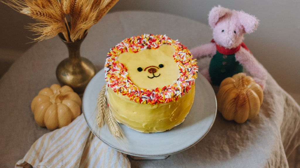 - Voila! Enjoy your super cute Winnie the Pooh-inspired sprinkle cake!