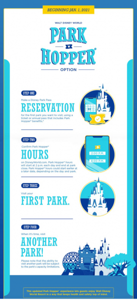 Starting at 2PM, Disney guests can hop to another park as long as that park is not at capacity. While you do not need a reservation currently to get into that second park, Disney made it clear that this could change in the future. Disney also updated their policy for Annual Passholders so that the ability to visit another park will be subject to applicable block out dates.