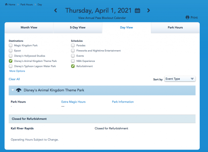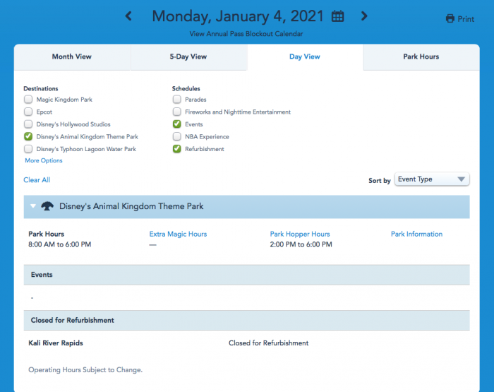 UPDATE: Kali River Rapids has been added to the official Walt Disney World refurbishment calendar as “Closed for Refurbishment” beginning January 4rd.