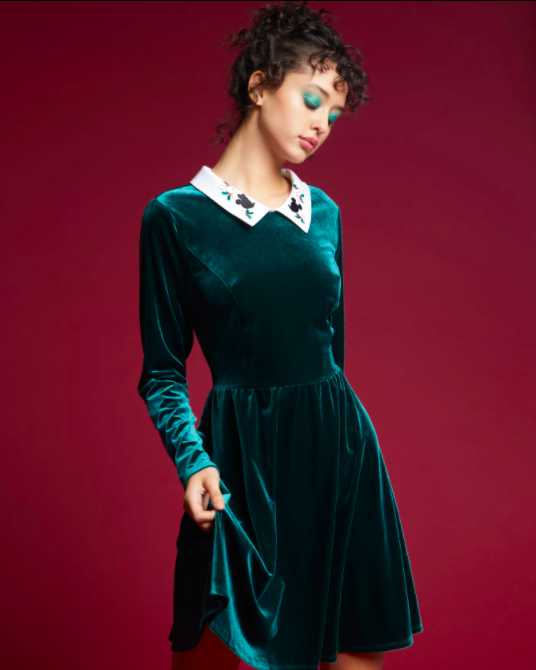 Over at Hot Topic, we spotted some super fun holiday-themed merchandise, but one collection stood out from the rest. The Mickey Mouse Holiday Collection is now available online, and will make you the star of any holiday gathering! First up is the Mickey Mouse Holiday Green Velvet Dress.