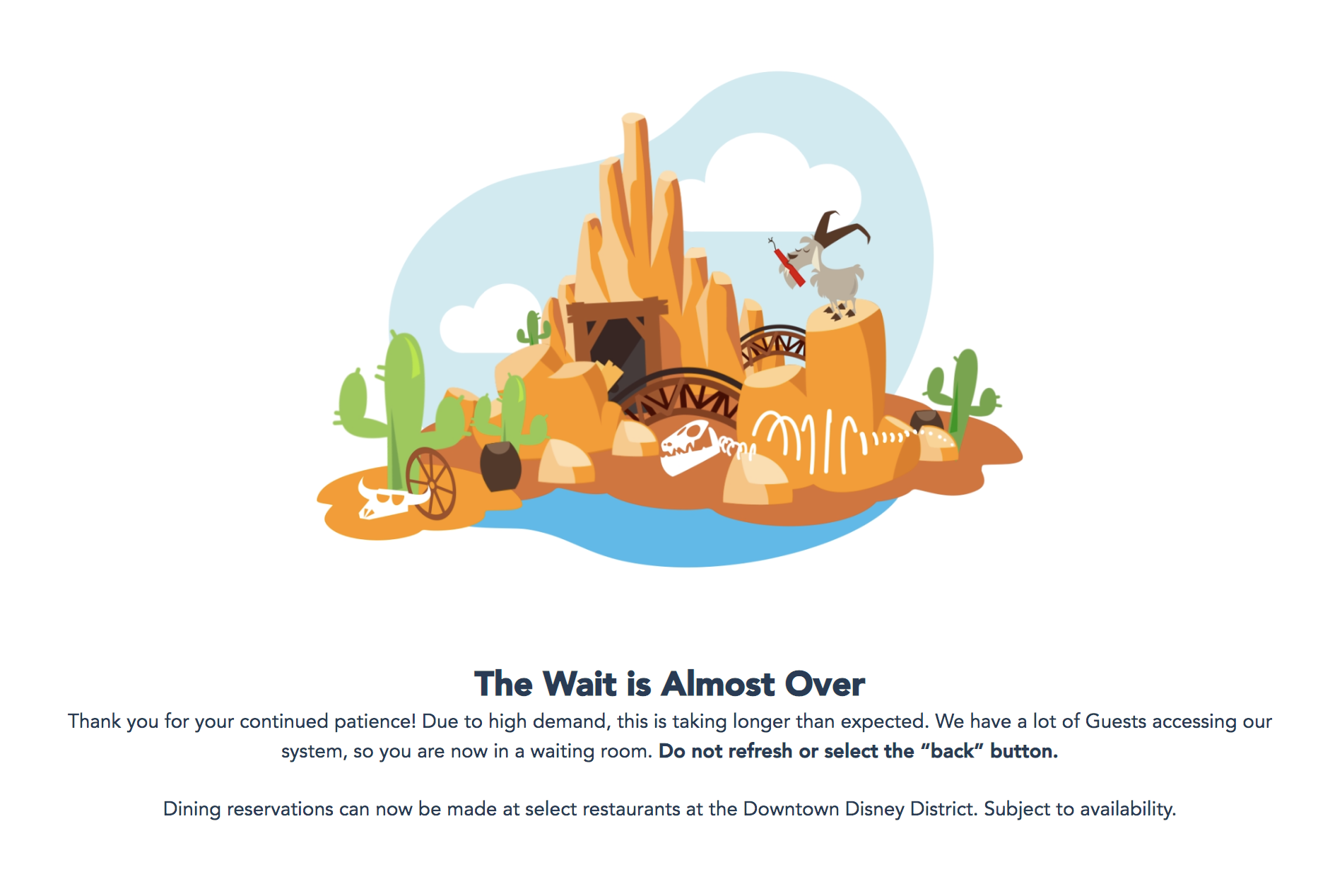 The website was experiencing technical difficulties as many users were stuck in the virtual waiting room when reservations were originally released. The Disneyland app directed users to the same virtual waiting page. The reservation page seems to be working now and you can search for reservations on either platform.