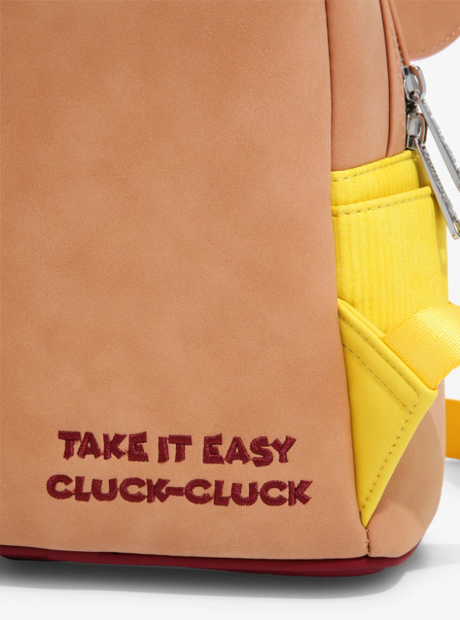 The front features Gus in his signature yellow shirt and green hat, with his sweet little ears and feet poking out. The backpack has side pockets and a front pocket that has — get this — A CORN KERNEL ZIPPER PULL.