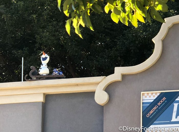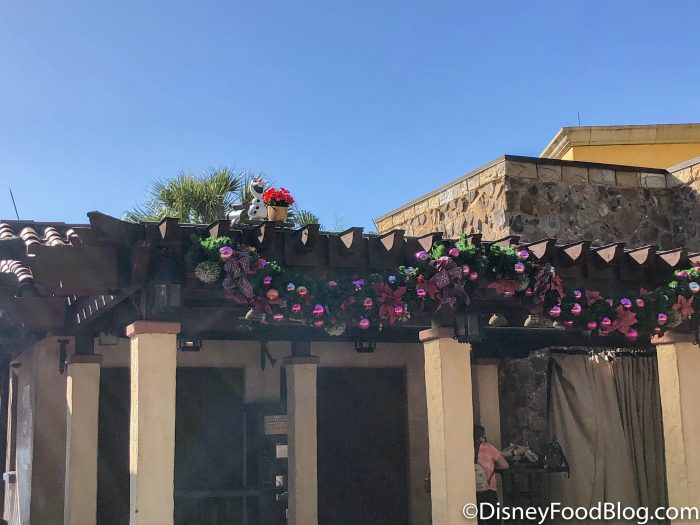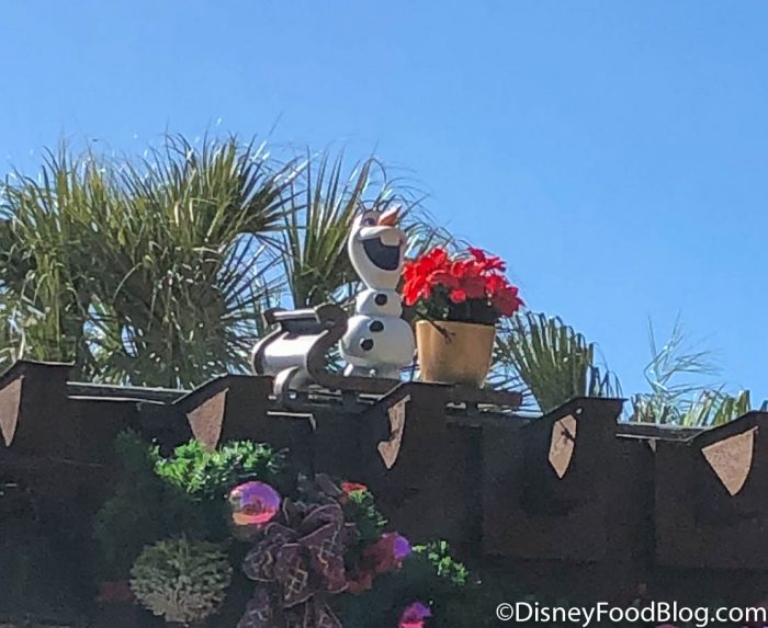 So, we’d heard about this new experience but today we finally got to SEE a small piece of it today, a few days before the start of the Festival of the Holidays! SPOILER ALERT: We are about to show photos of two spots where you can find Olaf on the scavenger hunt, so if you don’t want to ruin the surprise, skip ahead to the end of this post.