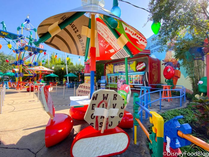 Woody’s Lunch Box is looking as cute as ever with oversized theming to make you feel like a real-life toy. Like most other quick-service restaurants in Disney World right now, Mobile Order is heavily encouraged. Once your order is ready, a Cast Member will direct you up to the counter.