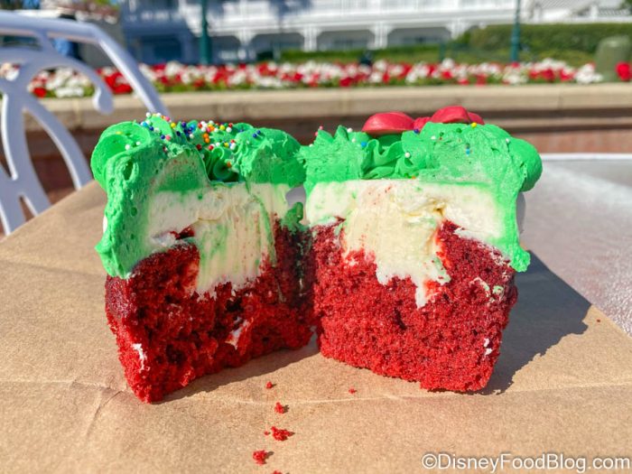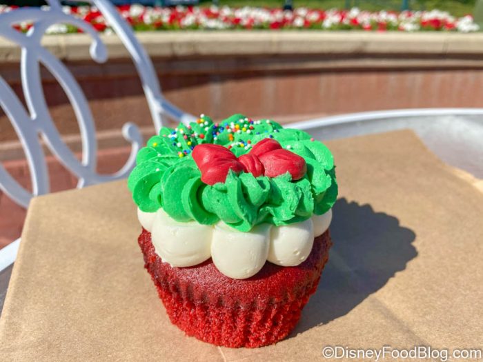 We’ve tasted A LOT of cupcakes over the years, and we like to think of ourselves as experts in the Disney cupcake world. Just recently, we’ve reviewed the Menagerie Cupcake, the Twice Upon a Christmas Cupcake, the Olaf’s Snow Flurry cupcake, AND the Simba cupcake. That’s a lot of cupcakes! But now, another holiday cupcake has returned to Walt Disney World, and you know we had to try it!