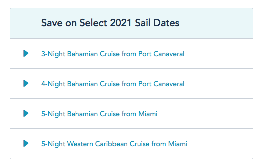 …as well as special deals for Florida Residents that can help them save on certain 3, 4, and 5-night Bahamian and 5-night Western Caribbean cruises scheduled for 2021.