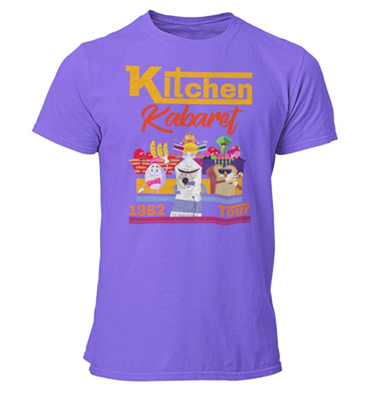 Do you have lots of childhood memories of singing fruits and vegetables? Then this shirt may be just what you need! The 1982 Kitchen Kabaret Tour shirt memorializes one of EPCOT’s long-gone attractions.