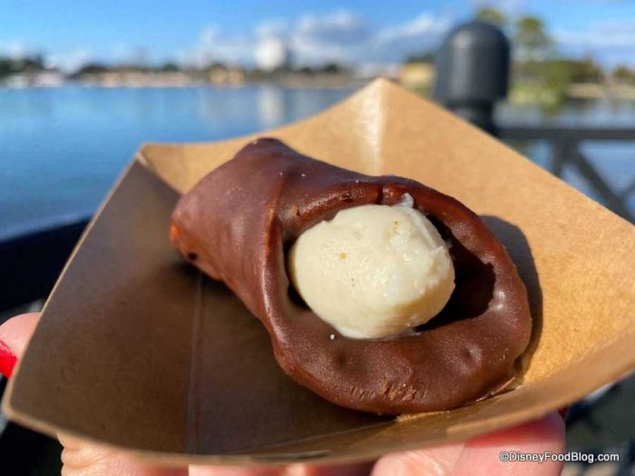 This treat is actually pretty good but it’s a far cry from an ACTUAL cannoli. If you’re big into Italian food, this one WON’T fill your cannoli craving. We also didn’t taste much orange, mostly just lots of chocolate and a good crunch. BUT, it’s sweet, cool, and creamy. So if you’re looking for a sweet bite, this is a decent option.