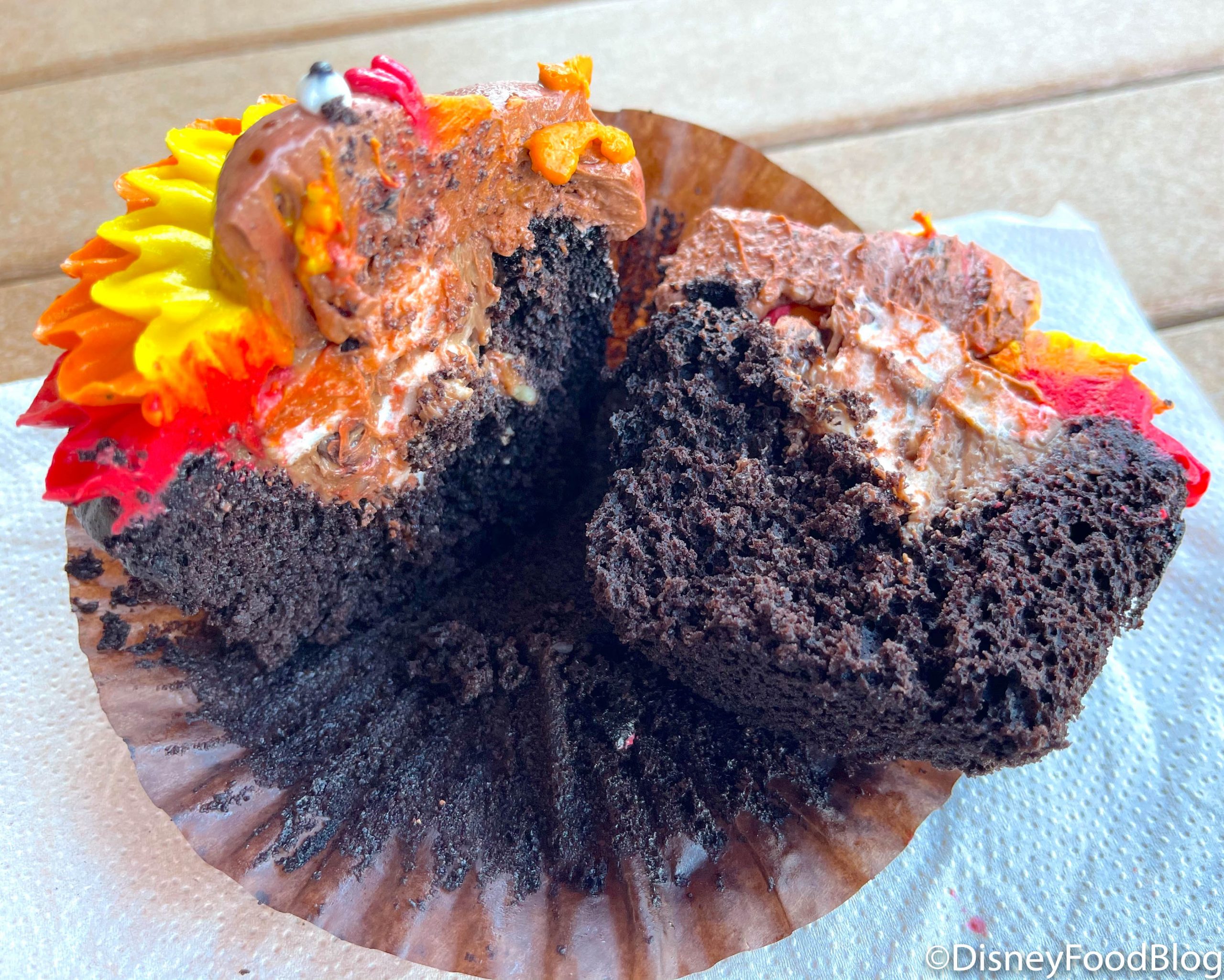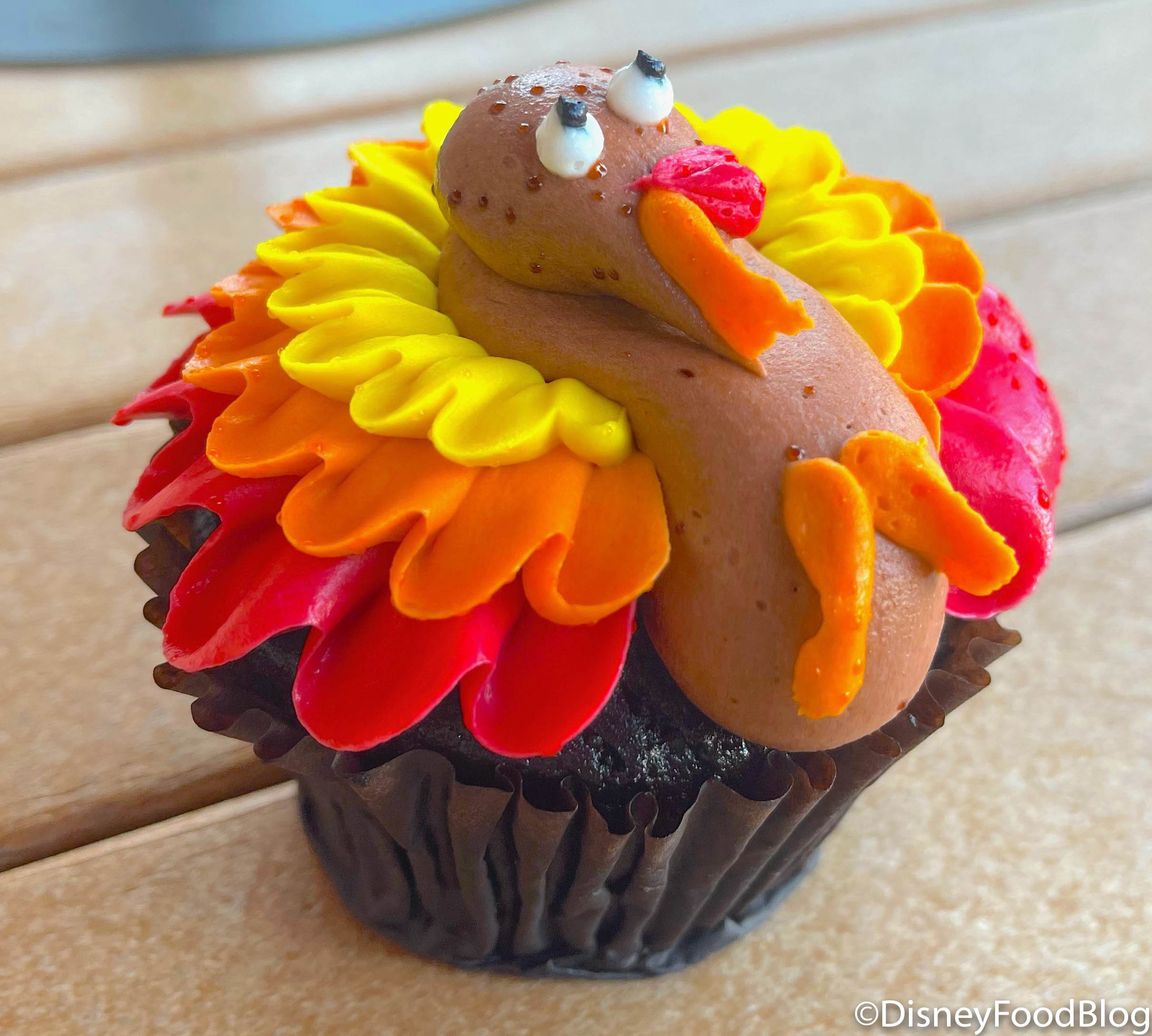 Looks-wise, this cutie reminded us an awful lot of the turkey cupcake we had at Sunshine Seasons in EPCOT last Thanksgiving! Check him out below!