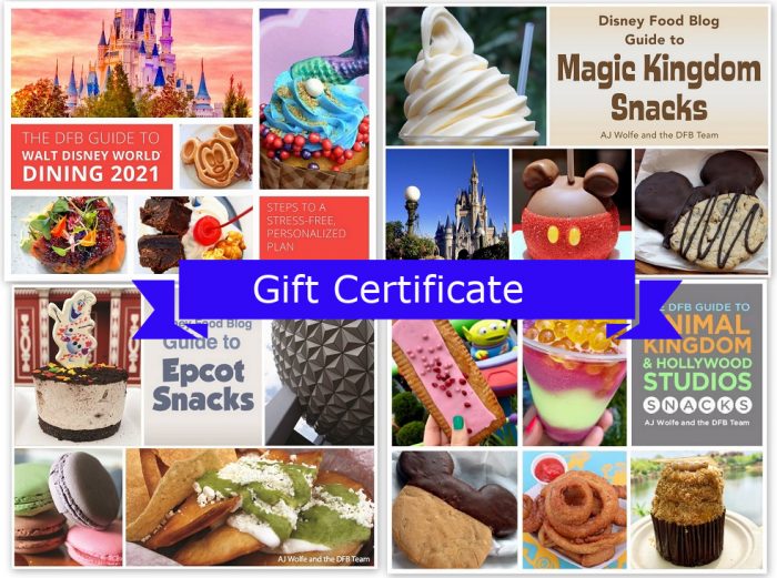 Thinking about giving the gift of DFB Guides this year to the Disney Food Lover in your life? It’s SO easy to do with our DFB Guide + Snacks Bundle Gift Certificate (or any of our other Gift Certificates)!
