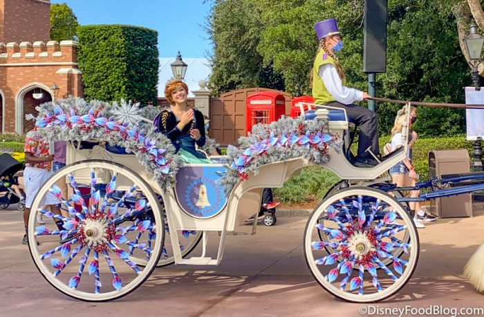 Anna’s carriage was all decked out in icy holiday decorations, which add a really great pop of color. She looked absolutely thrilled to have all these guests in EPCOT for the Festival of the Holidays!