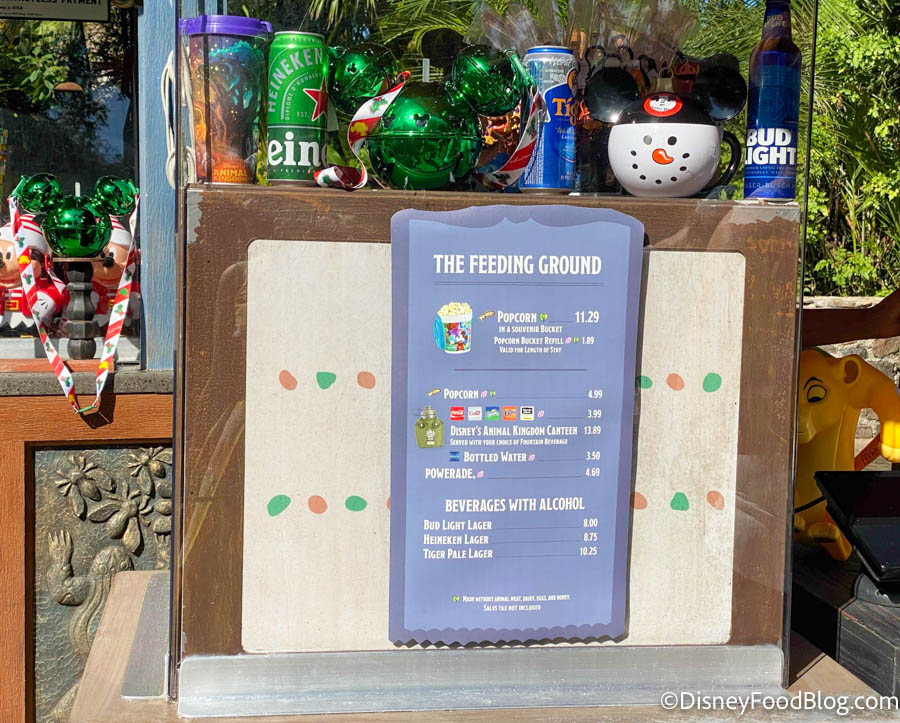 One of the popcorn stands in Disney’s Animal Kingdom, The Feeding Ground, has reopened! This stand is home to not only popcorn but also cold drinks, including some alcoholic beverages.
