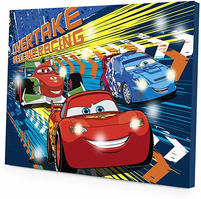 And last but certainly not least we have a VERY cool addition to your Cars-loving kiddo’s room. Take a look at this Cars 3 Canvas Wall Art and yes, it lights up with LEDs!