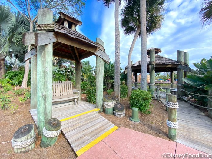 We also noticed that a few of the seating areas at Disney’s Caribbean Beach Resort were back open for guests to kick back and relax in the shade!