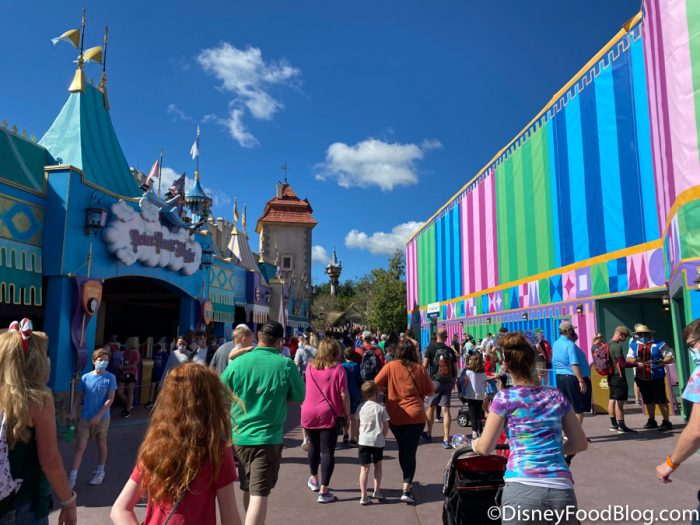 Right now, if the line for Peter Pan’s Flight, for example, spills outside of the attraction (because of all the social distancing requirements), the Cast Members can simply wrap the line around the outside of the attraction, but that can then cause the whole walkway to feel a bit more cramped (especially if the line for “it’s a small world” also extends outside of its interior building).