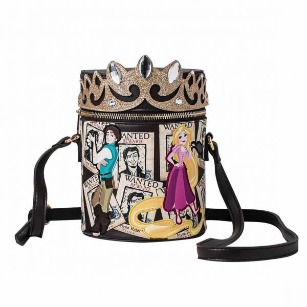 This NEW Tangled Crossbody Bag features the couple together, standing in front of dozens of Flynn’s WANTED posters. And look at the tiara with crystals on top! ❤️❤️❤️