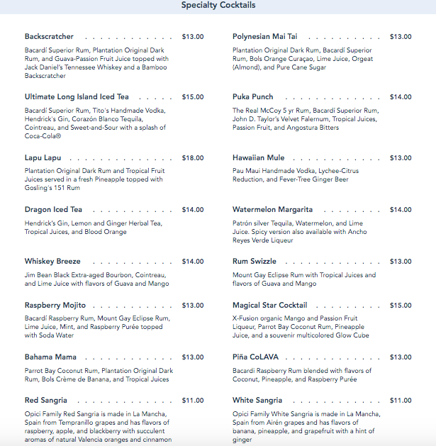 If you find yourself looking for a less-sweet option on a menu full of sugary tropical drinks, this might be the one for you! The Puka Punch will run you $14.