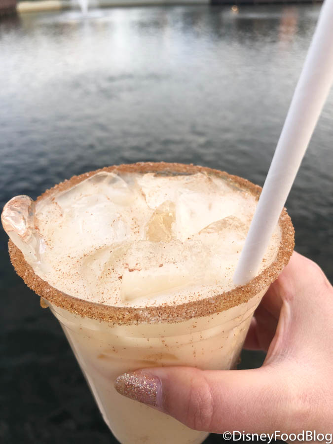 This one had a pretty harsh alcohol taste, so if you aren’t a fan of that, you may want to pick a different drink from Disney Springs. However, it was very creamy and light because of the rice milk and had a nice kick of cinnamon to it.