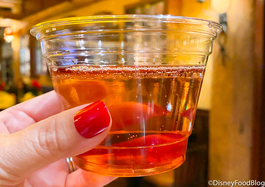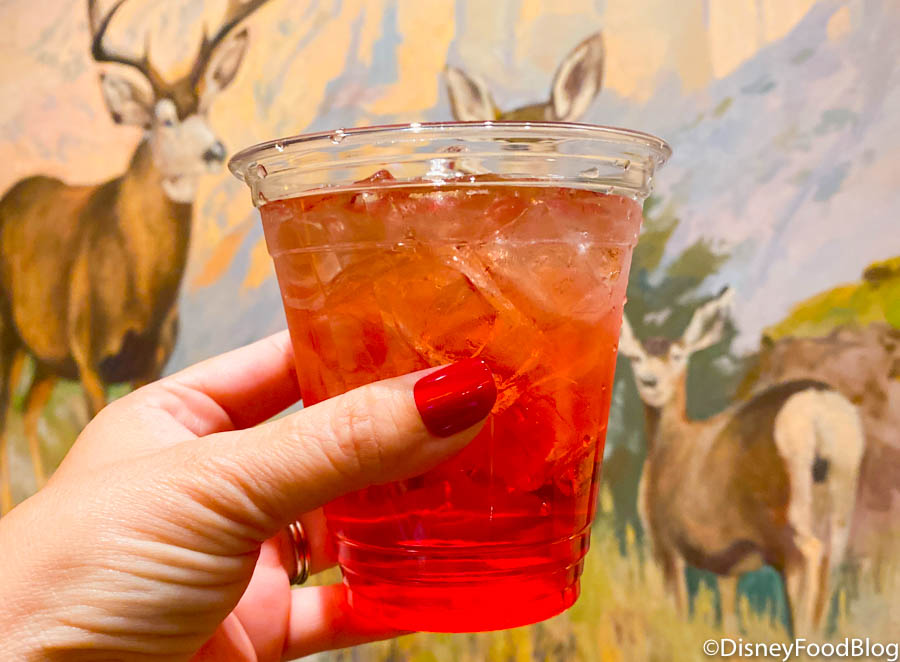 You can find both of these drinks at Territory Lounge when it’s open. Keep in mind, Cast Members let us know that the lounge only reopened since it was too chilly for Geyser Point to be open, so it won’t be open regularly. If you’re at Wilderness Lodge on a brisk day, check in to see if you can pick up these sips!