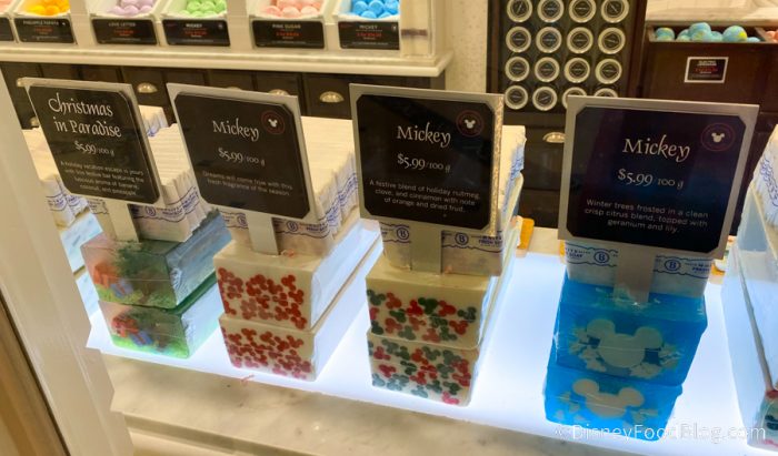 We spotted some new holiday soaps at Basin. There is the Christmas in Paradise soap, along with three holiday Mickey-themed soaps! Each soap is $5.99.