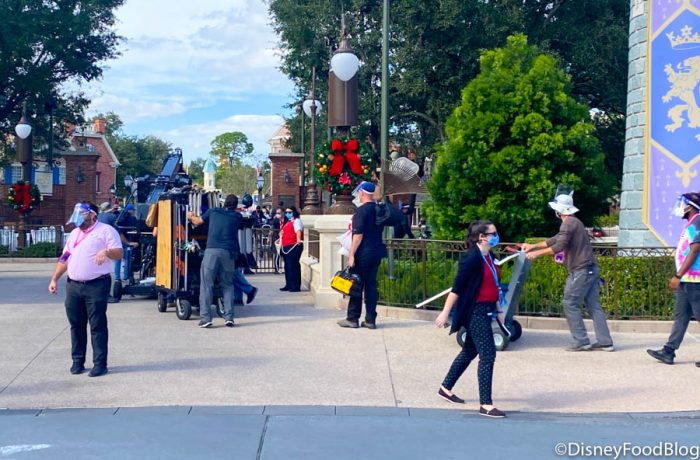 Despite the craziness of this year, we’re still happy we get to look forward to ABC’s Disney Parks holiday special on Christmas Day — filmed right from the parks! Today, we spotted that part of the pathways around Cinderella Castle was blocked off, and it’s for a pretty FUN reason.