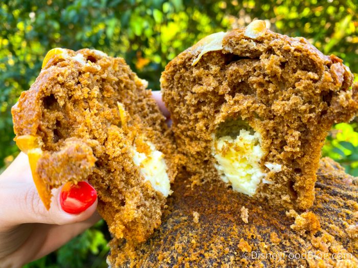 Today though, we found a new gingerbread treat — a Gingerbread Muffin! And yes, it looks identical to the Pumpkin Cream Cheese Muffin we nommed on over at Harambe Market (which we loved). But how does this new gingerbread cousin compare?