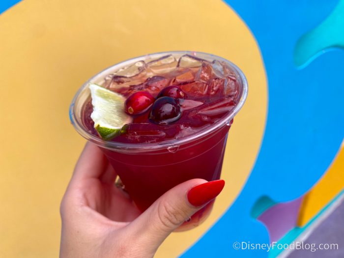 Sounds like holiday spirit, right?? We had to try it — obviously — for science! First, look at this cute little detail — the Cast Member who made it for us tried to turn the cranberries into a hidden Mickey, because Disney magic is real, y’all.