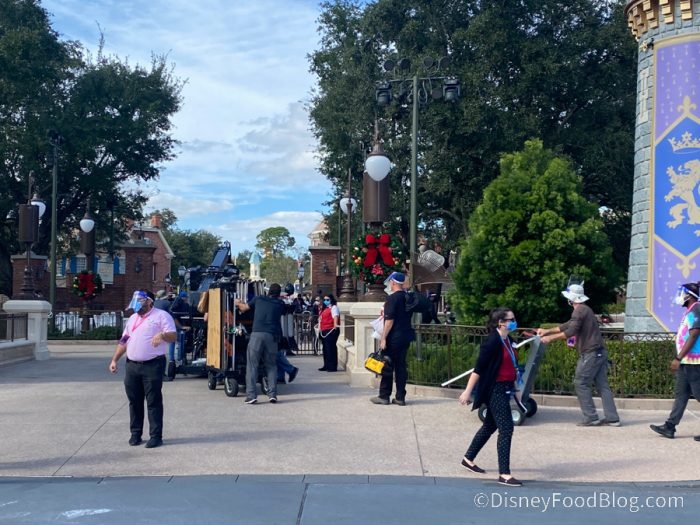 We happened upon some filming at Magic Kingdom, which we think might be for the upcoming ABC Disney Parks Holiday Special!