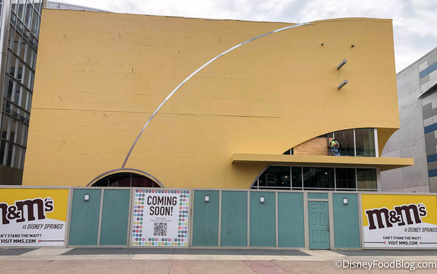 Although the opening of the M&M’s Store coming to Disney Springs has been pushed back, it looks like some progress is being made on its construction! We noticed the building now has windows!