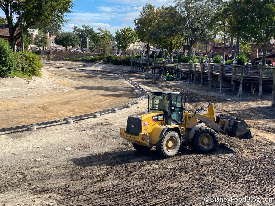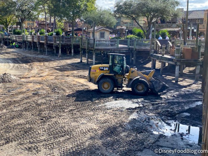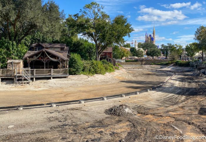 Now let’s take a stroll over to Frontierland to see what’s going on with the construction of Rivers of America. The river has been completely drained for over a month now, while both Tom Sawyer Island and the Liberty Square Riverboat undergo refurbishments as well.